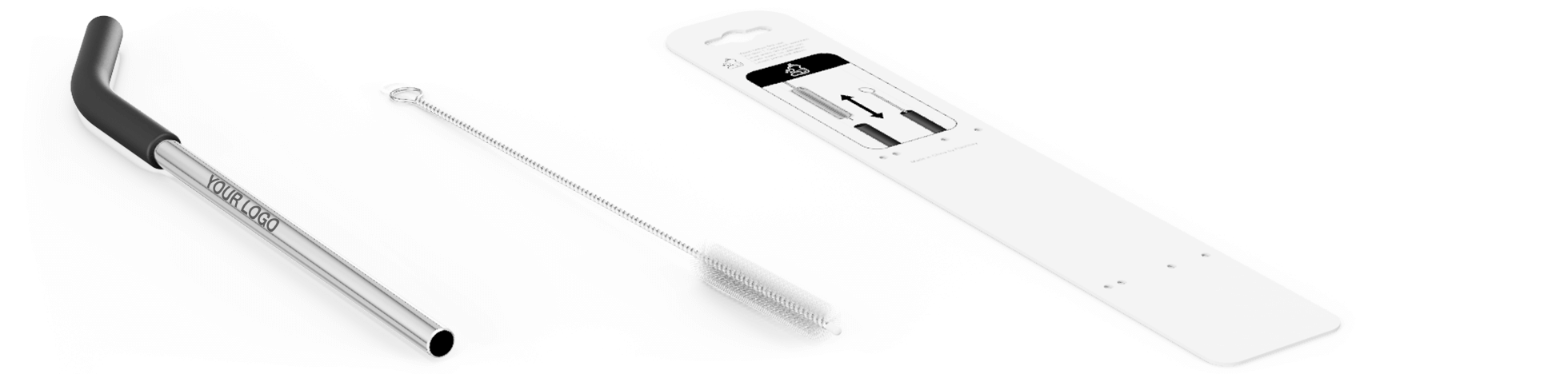 The Funky reusable metal straw features a soft-touch silicone drinking tip and a metallic branding area, ready to be Laser Engraved with your logo, slogan or website address. Each straw is securely packaged to a cardboard backing which also includes a straw cleaner. A fun model that's an extremely popular giveaway item at Events and Trade Shows.